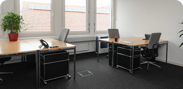 Abschliessbare Büros für Sie oder Ihr Team. Ein ruhiges, professionelles Umfeld für maximale Konzentration und Diskretion.